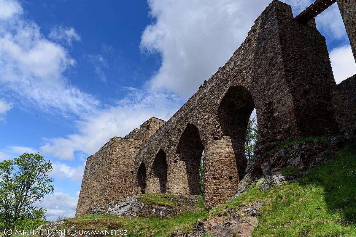 Raritou je světově unikátní kamenný most spojující hmotná torza paláce zvaného Rajský a jeho protějšku - přední věže. Návštěvníky zaujme i pozdně renesanční zámecké křídlo. Na hradě byly svého času uschovány korunovační klenoty Království českého, aby nemohlo dojít ke korunovaci Jiřího z Poděbrad na krále.