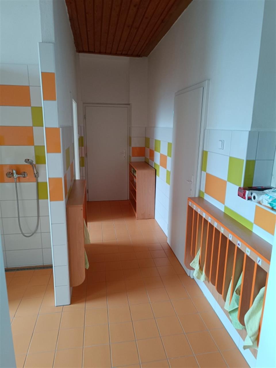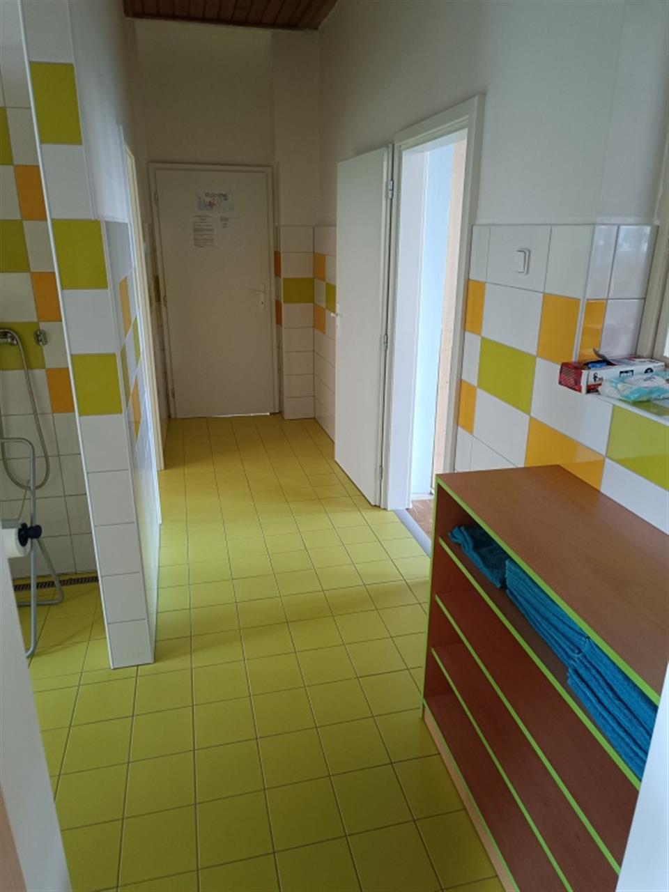 A jak to tedy všechno probíhalo? Již v polovině června jsme sestěhovali všechny děti do pavilonu Motýlků, zaměstnanci zakryli vše, co se zakrýt dalo a u Broučků začalo velké bourání. Jelikož součástí dotace bylo i vybudování bezbariérového WC, došlo i na bourání a kompletní rekonstrukci sociálního zařízení pro dospělé.