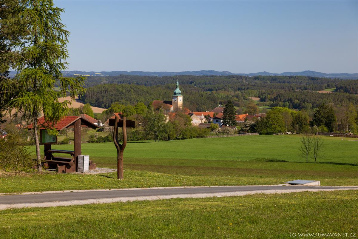 Zde se otevře panorama Šumavy od Kleti přes Libín, Bobík, Boubín, Javorník, Antýgl, Modravskou horu až k Českému lesu.